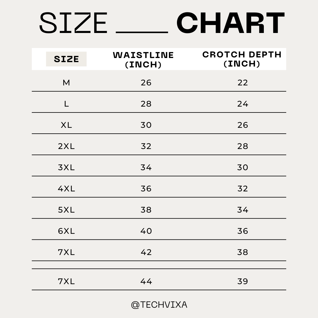 We offer inclusive sizing from M to 8XL (waist 26”–44”). The stretch fabric adapts to your body while staying snug and secure — no slipping, no riding up.