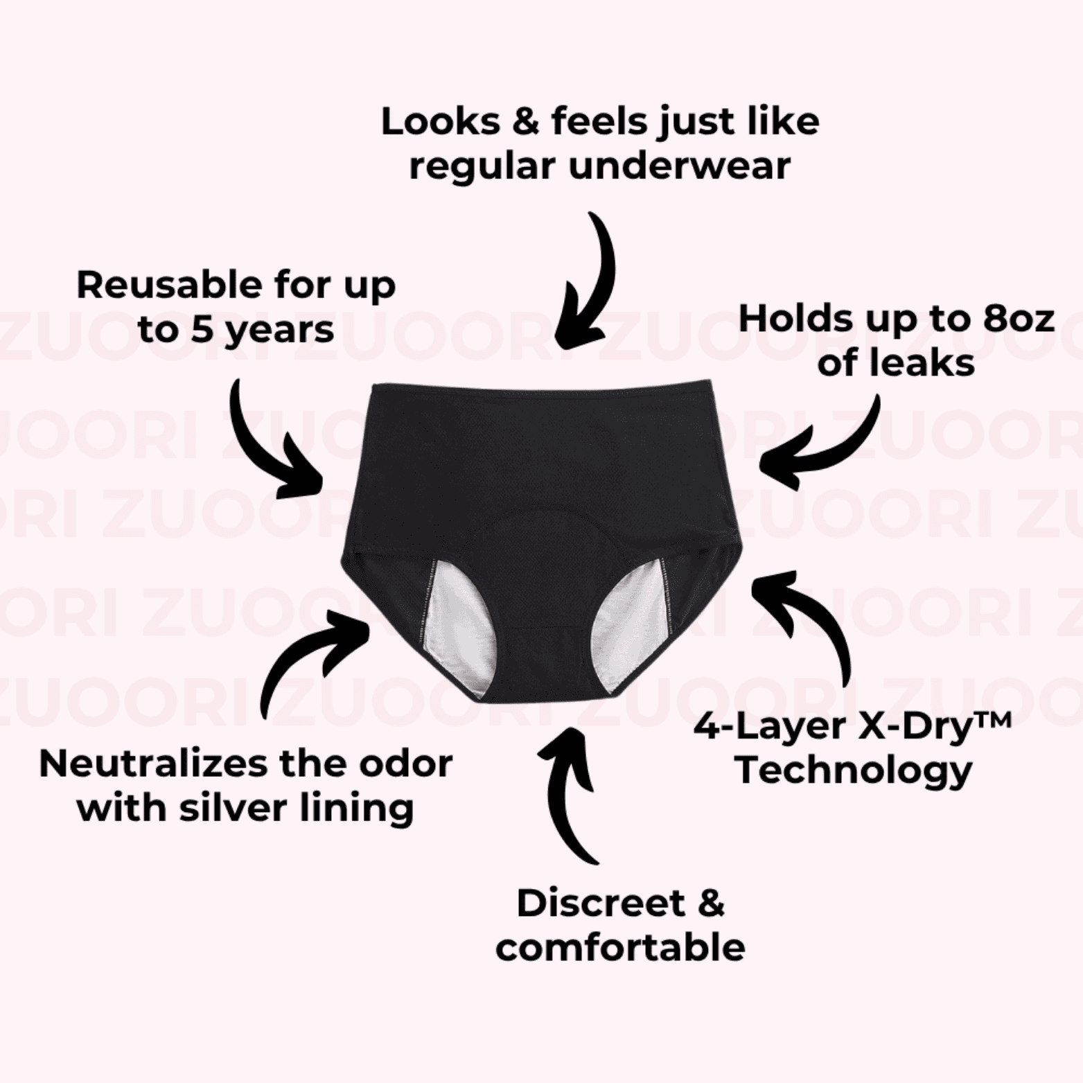 The TVX™ Leak-Proof Comfort Underwear offers full front-to-back coverage with a wider & longer leak-proof layer, protecting you from light to moderate bladder leaks, heavy period flow, and overnight use. For heavy days, it works perfectly as extra protection with pads, tampons, or cups.